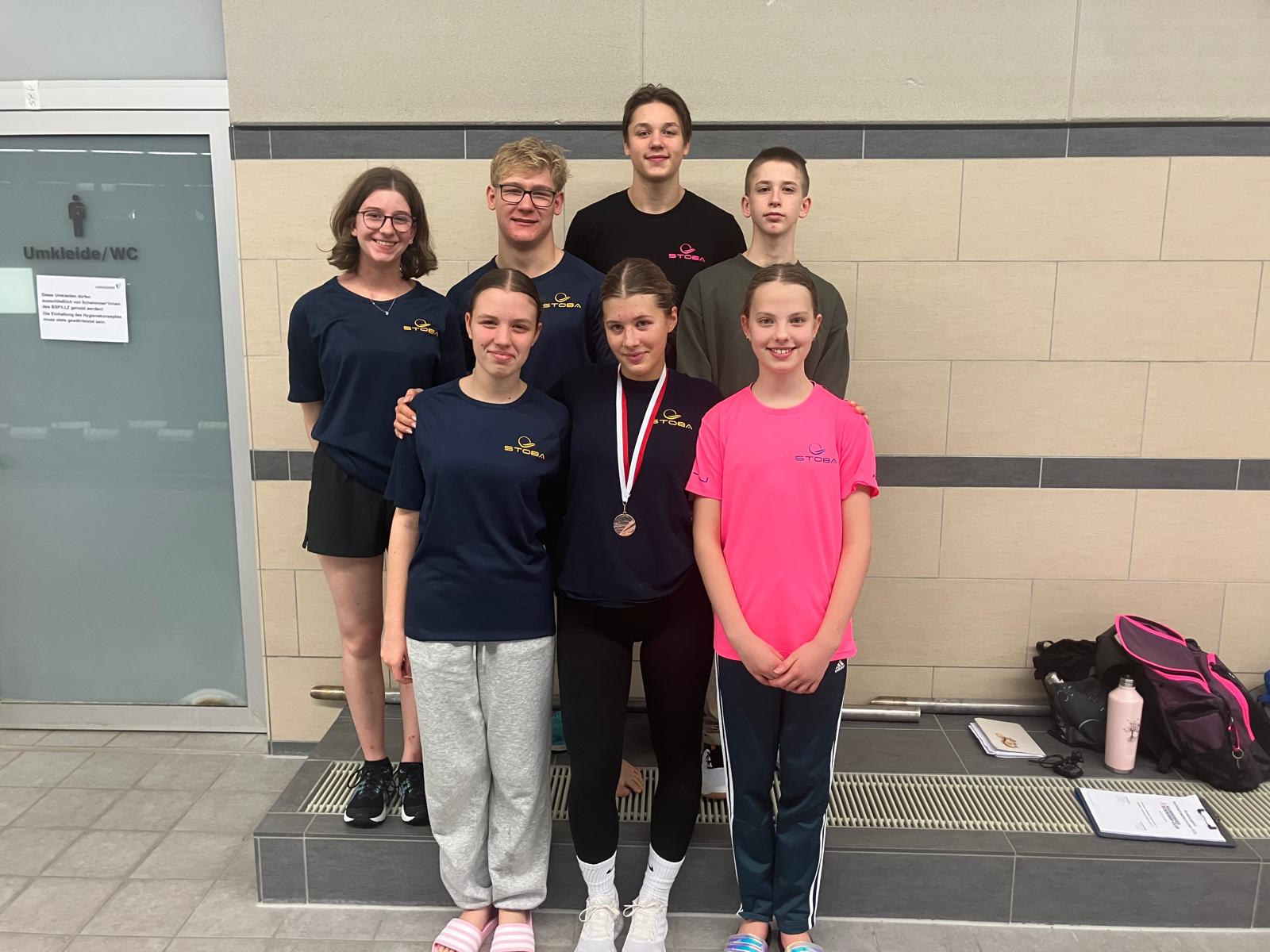 Neben den Einzelleistungen glänzten auch die Staffelteams der SG StoBa. In der 4×200 Meter Freistil der Jahrgänge 2013/14 konnten sowohl die Mädchen (Yara Schuld, Smila Pieper, Johanna Frahm, Lena Schröder) als auch die Jungs (Conrad Wandschneider, Levi Bäckert, Pepe Samuel Hempell, Mattis Lasse Kimmich) jeweils einen hervorragenden dritten Platz erzielen.